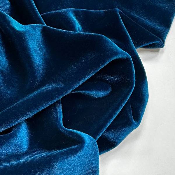 ОписаниеСтрейч бархат, с коротким ворсом и небольшим блеском. Средней плотности, мягкий и пластичный. Бархат достаточно эластичный, что позволяет шить огромный ассортимент изделий. Он подойдет для обтягивающего топа, юбки, платья и наравне с ними будет отлично смотреться в свободном крое спортивного костюма или бомбера. Отлично смотрится в изделиях как основной материал, а так же сочетается с однотонными трикотажами или тканями соответствующей плотности.