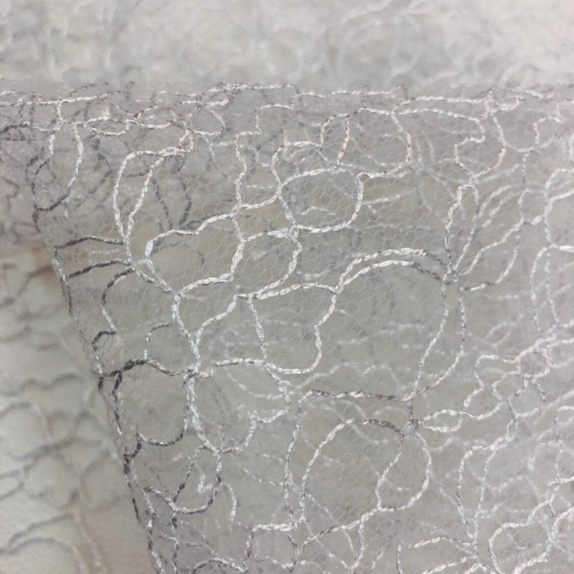 ОписаниеПрозрачный материал, по фактуре напоминающий хаотично сплетенные нити. Она хорошо тянется и легко драпируется в складки. Подойдет для пошива нарядных топов и праздничных платьев.