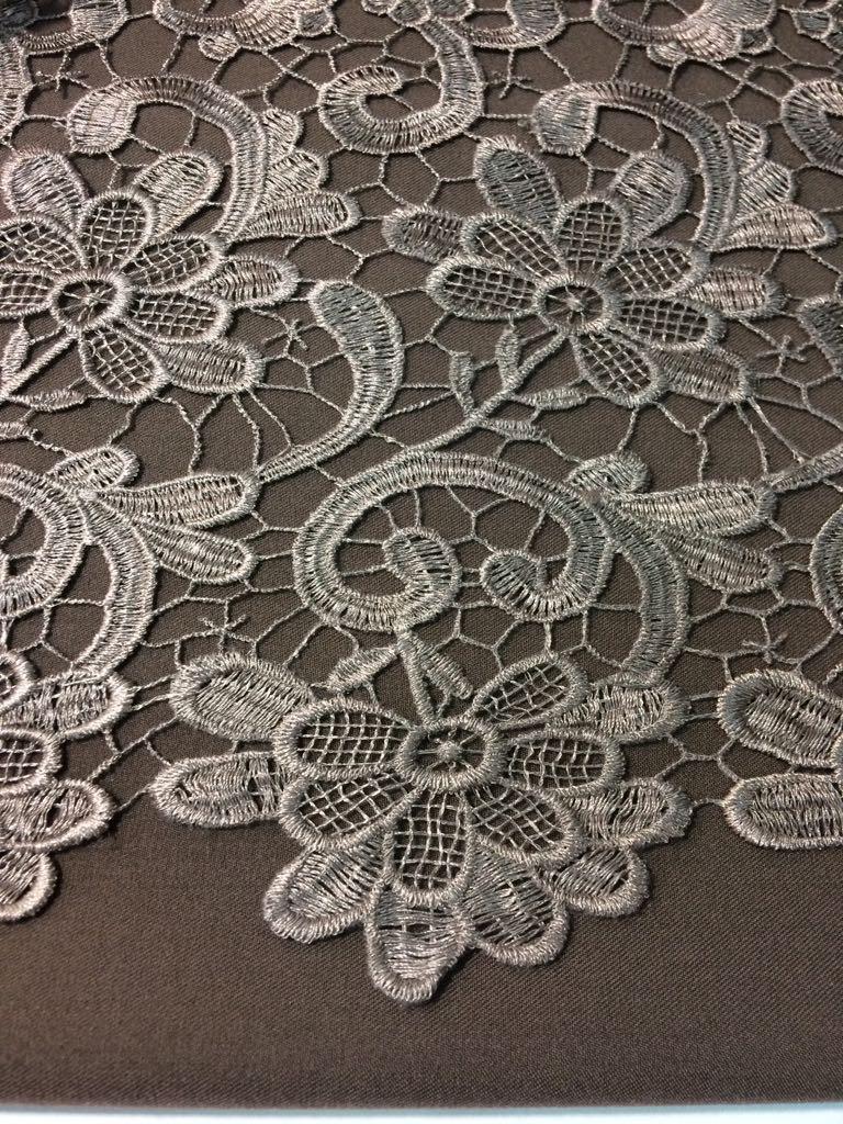 ОписаниеГипюр. Ткань плотная , ажурная, с фестонами по краям. Подходит для пошива праздничных нарядов.