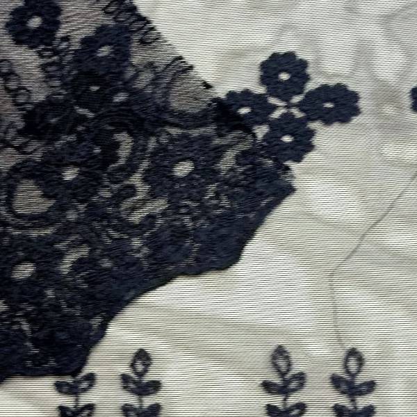 ОписаниеСетка с вышивкой. Вышивка идет как купон с двух сторон вдоль кромки. Отлично подойдет для пошива блузки, платья и для декора в изделии.