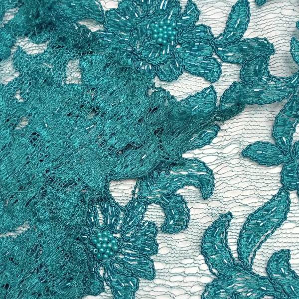 ОписаниеГипюр. Ажурная ткань,расшитая бисером и стеклярусом, с фестонами по краям. Обладает уникальными эстетическими свойствами. Подходит для пошива праздничных нарядов.