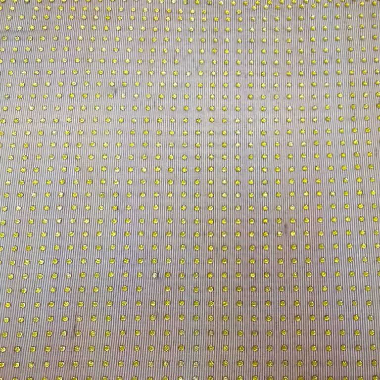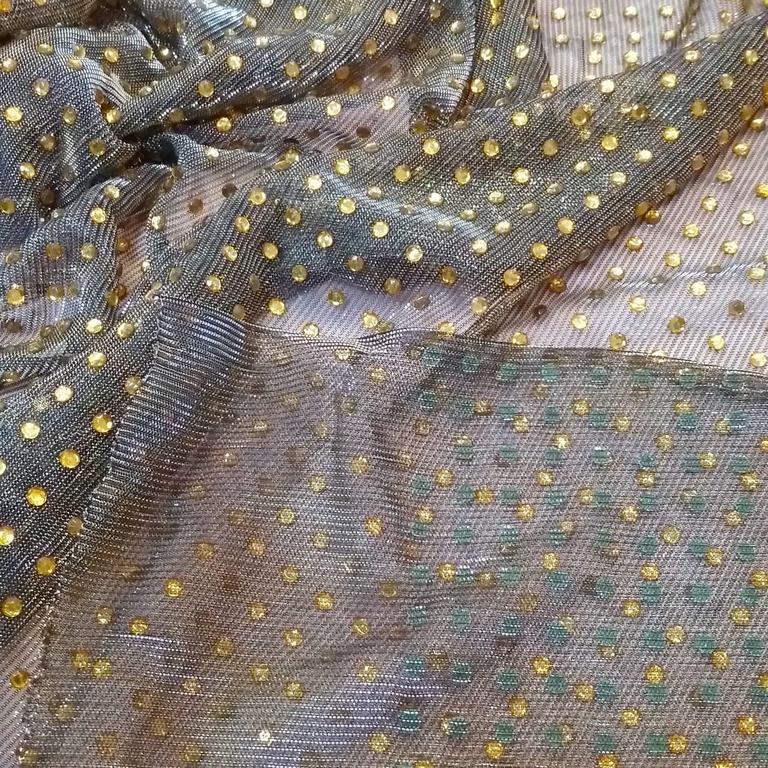 ОписаниеПолупрозрачная ткань со стразами. Внешне очень эффектная. Благодаря тяжести страз ложится по фигуре легко. Подойдет для пошива вечерних платьев и топов.