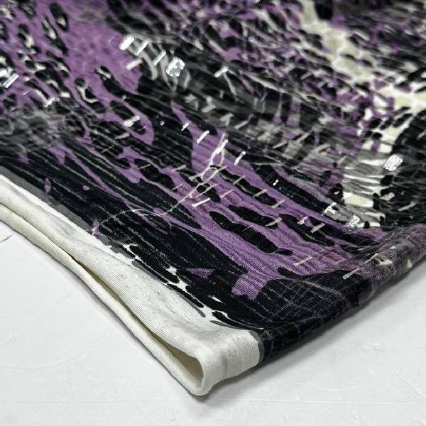 Цвет Фиолетовый Изготовитель Ю. Корея Плотность 300 г/мп Ширина 1,5 м. Состав 35% вискоза, 60% пэ, 5% эл -