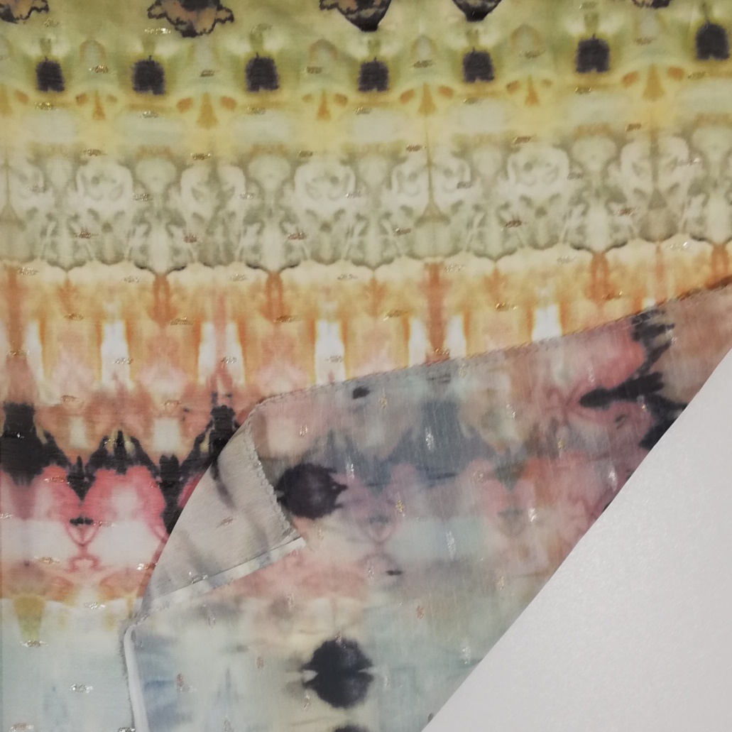 ОписаниеШифон. Легкая, полупрозрачная ткань, не мнется, не образует заломов, хорошо драпируется и имеет эффектный внешний вид. Подходит для пошива легких костюмов, платьев, блузок, объемных брюк и юбок.