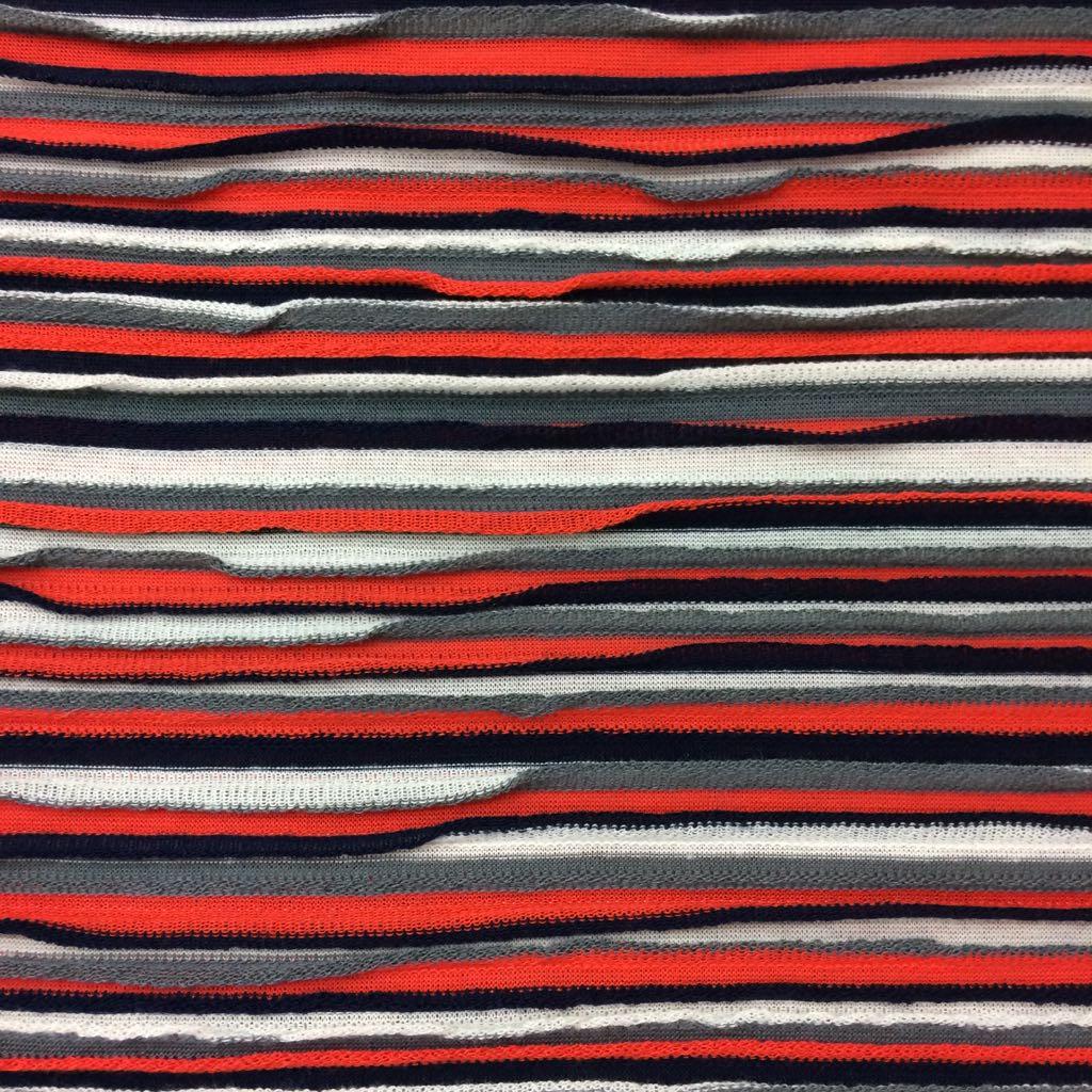 ОписаниеТрикотаж вискозный. Фактурный. Полоска расположена поперек ткани в виде коротких оборок шириной 7мм. Эффектно смотрится в платьях, юбках, кардиганах.
