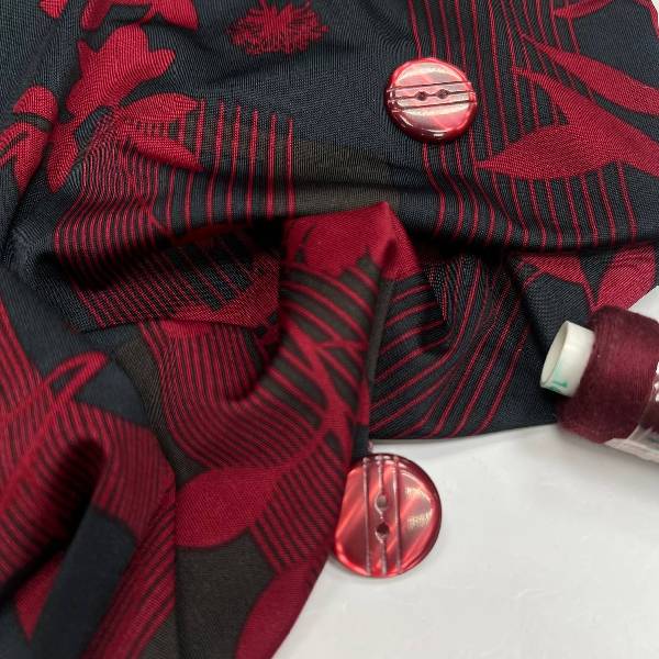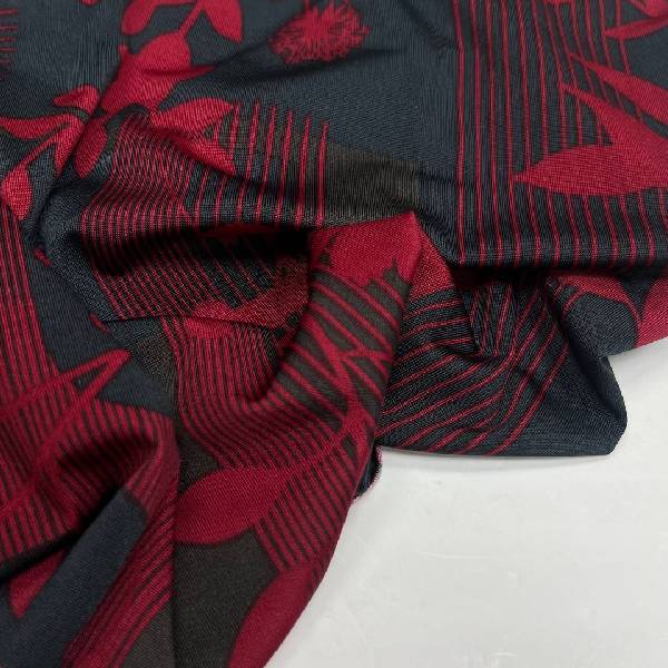 Цвет Красный Изготовитель Ю. Корея Плотность 170 г/мп Ширина 1,5 м. Состав 48% вискоза 36% полиамид,12% лайкра -