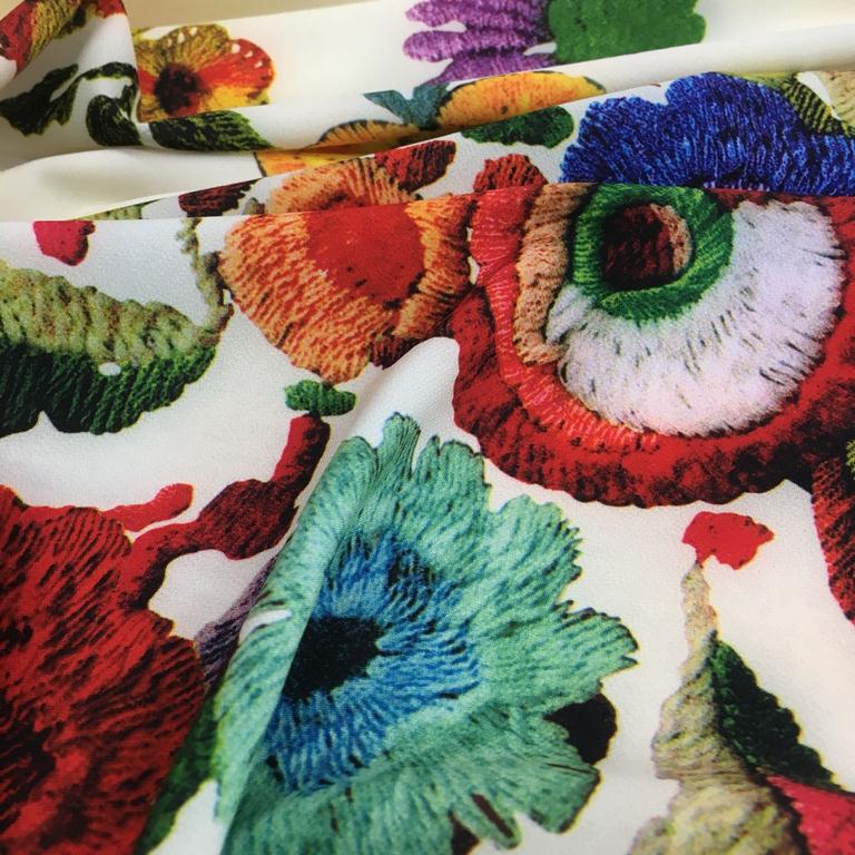 ОписаниеЭластичный материал средней плотности, на ощупь гладкий и шелковистый. Благодаря содержанию эластана он хорошо тянется и отлично садится по фигуре. Подходит для пошива блузок, платьев, юбок, сарафанов и других видов одежды..